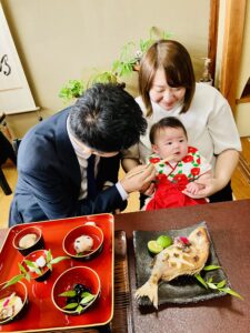 令和7年9月7日(日)本日のお客様。多度大社ご祈祷後のお食い初めの儀と御家族様の御祝い膳に御利用いただきました。健やかなるご成長心よりお祈り申し上げます。 2025年9月15日紀の川からのお知らせkinogawa-tado
